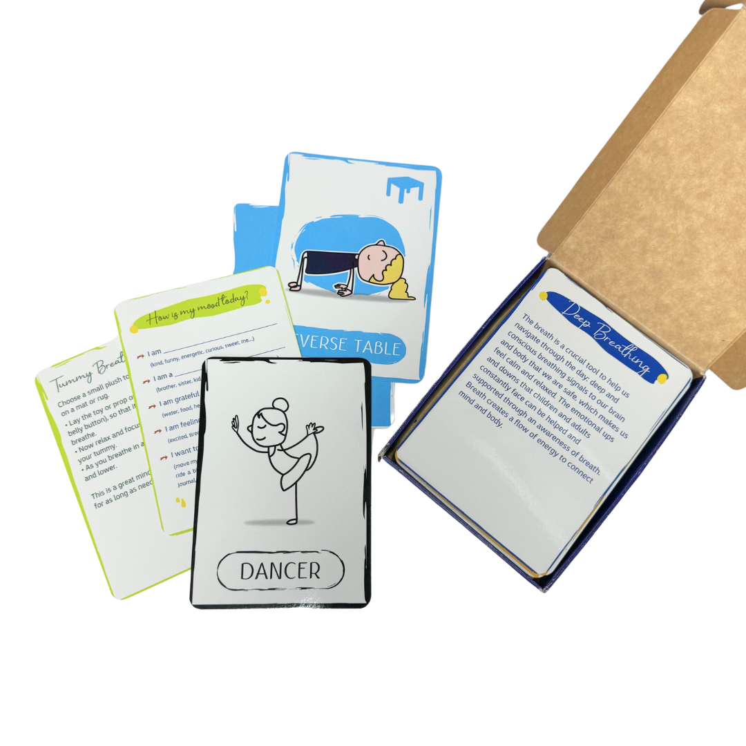 Stackable pebbles invite slow, careful building that steadies breathing and attention. Activity cards guide simple stretches you can repeat before reading time. Classic board games support turn taking without screens. If deep pressure helps your child settle, add soft weight with weighted animals. A light scent from aromatherapy oils can signal “calm time,” and breathing card games keep inhale and exhale timing easy to follow.