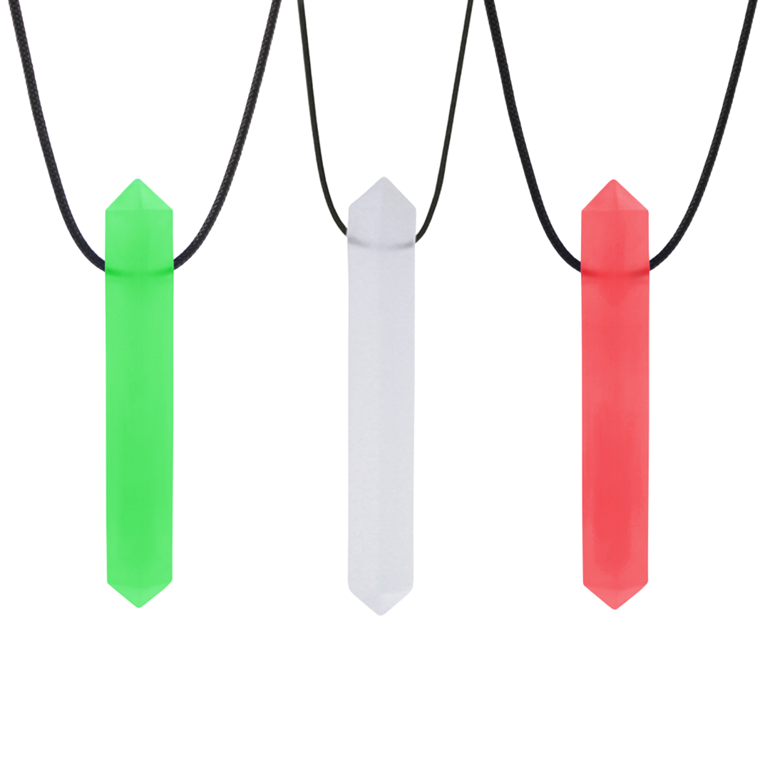 Brick-style sticks work like chewlery, so you can hold or wear during homework, travel, or waiting. Textured grabbers include three surfaces, including smooth, round bumps, and rectangular bumps, for realistic non-food chewing and extra input for lips, cheeks, and tongue. For discreet wear, try chew necklaces and bracelets, and use pencil toppers when you want a chew point that stays with your stationery.