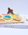 The perfect way to introduce your little ones to puzzle play and positive mindset. Designed with beautiful hand-painted nature themed illustrations and bright colours on wood, this will engage your child to connect with nature and wonder for the world.
